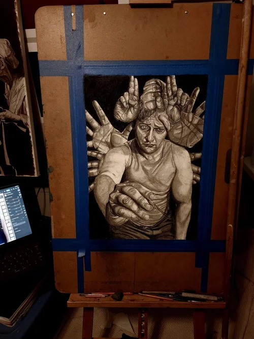 Quick sketch study from my moleskin, sharpie on paper.